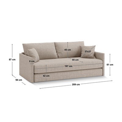 Ženilková, rozkladacia, vodoodolná, béžová, trojmiestna, šírka 209 cm