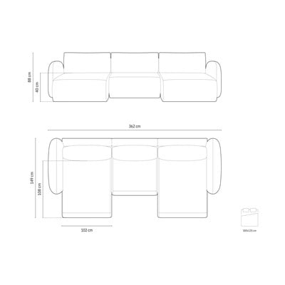 Ženilková, rozkladacia/s úložným priestorom, do tvaru "U", béžová, viacmiestna, šírka 362 cm