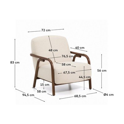 Béžové ženilkové kreslo Sylo od značky Kave Home sa vyznačuje veľkorysým operadlom a širokým sedadlom, ktoré sú orámované zaoblenou konštrukciou z masívneho jaseňového dreva. Táto konštrukcia dodáva kreslu vizuálnu ľahkosť a objímajúci dizajn.