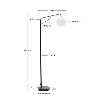 Stojacia lampa Eilo od značky Kave Home. Tienidlo z matného skla jemne rozptyľuje svetlo a vytvára príjemnú a relaxačnú atmosféru.