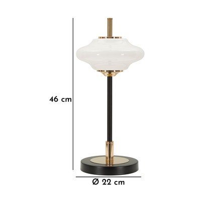 So skleneným tienidlom, kovová, biela/čierna, výška 46 cm