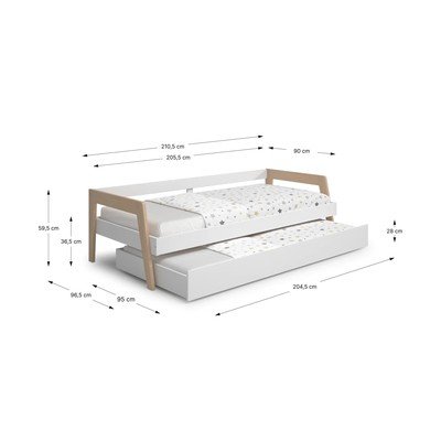 90x200 cm, s výsuvným lôžkom, s úložným priestorom, s roštom, z borovicového dreva, povrchová úprava: lakovanie, biela
