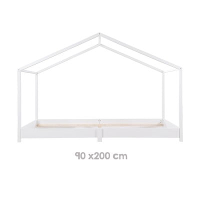 90x200 cm, domčeková, s roštom, z masívneho dreva, povrchová úprava: laminovanie, biela