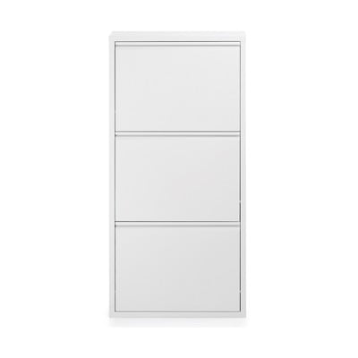 Skrinka na topánky Kave Home Rox je štíhla a zároveň priestranná. Vďaka systému skladania - celkovo 3 dvierok - poskytuje miesto na uloženie všetkých vašich obľúbených párov a zároveň nezaberá veľa miesta. Skrinka na topánky je vyrobená z odolného kovového materiálu. V zadnej časti nájdete aj otvory na bezpečné pripevnenie k stene.