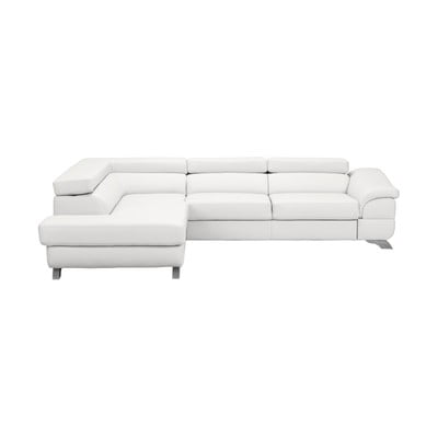 Rohová pohovkaKožená, polohovacia/rozkladacia/s úložným priestorom, ľavý roh, biela, trojmiestna, šírka 272 cm, hĺbka 85 cm, hĺbka sedadla 57 cm