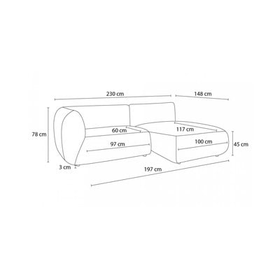 Menčestrová, ľavý roh, biela, trojmiestna, šírka 230 cm