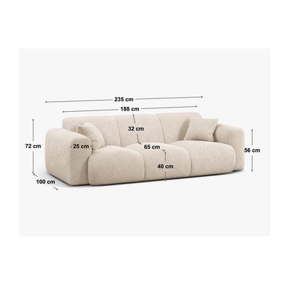 Z textílie buklé, biela, trojmiestna, šírka 235 cm, hĺbka 100 cm, hĺbka sedadla 62 cm