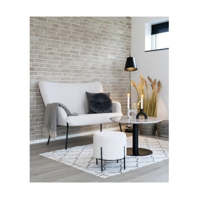 Dvojmiestna pohovka Glasgow od House Nordic s elegantným bouclé čalúnením v bielej farbe a čiernymi kovovými nohami vnesie do vášho interiéru moderný a útulný nádych.