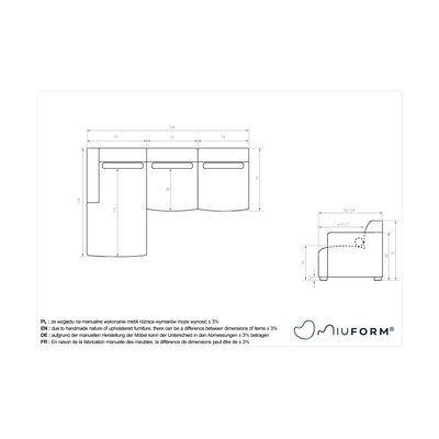 Ľavý roh/s leňoškouKrémovobielaTrojmiestnaŠírka 244 cm