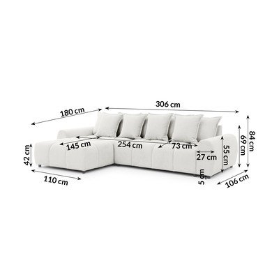 Ľavý roh/s leňoškouBielaVodoodolná/odolná proti škvrnámŠtvormiestnaŠírka 306 cm