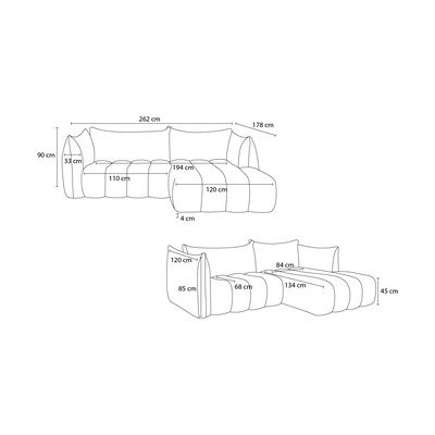 Rohová pohovka Azra od značky Bobochic Paris. Súčasťou pohovky je praktická leňoška, ktorá poskytuje ideálny priestor na pohodlný odpočinok a relaxáciu.
