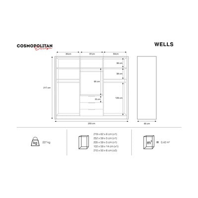 Rad Wells prinesie do vášho interiéru štipku glamour štýlu v podobe šatníkovej skrine. Vaše oblečenie získa svoje miesto v prehľadnom systéme zásuviek a dvierok a vaša spálňa bude obohatená o nový kúsok.