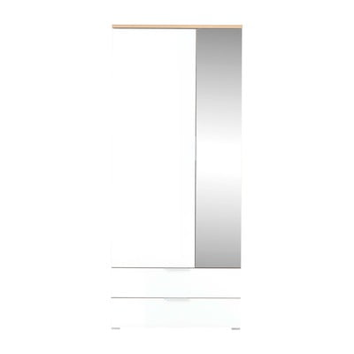 Šatníková skriňa TeldeSo zrkadlom, v dekore duba, z drevotriesky, povrchová úprava: melamín/povrchová úprava: sklo, lesklá, biela/v prírodnej farbe, šírka 84 cm, výška 196 cm, hĺbka 40 cm