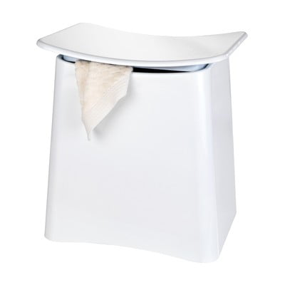 Skvelé riešenie do malej kúpeľne: stojí v sprchovacom kúte a zároveň slúži ako nádoba na špinavé oblečenie. Pevný plast, vyzerá pekne.