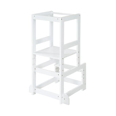 Učiaca veža Roba je stabilná a bezpečná stupienková stolička pre deti, navrhnutá podľa princípov Montessori pedagogiky. Podporuje samostatnosť a zapojenie dieťaťa do každodenných činností. Trojstupňové nastavenie plošiny (35/41,5/47,5 cm) a schodíkov (15/19/24 cm) umožňuje prispôsobiť vežu rastúcemu dieťaťu. Schodíky uľahčujú samostatné nastupovanie a zábradlie okolo hornej plošiny chráni dieťa pred pádom. Veža je vhodná pre deti od 12 mesiacov.