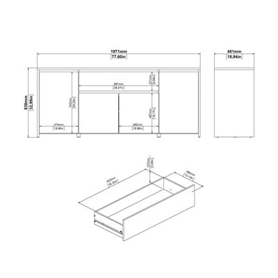 S rozmermi 197x84x48 cm ponúka dostatok miesta na vaše veci. Komoda má štyri uzavreté priestory s policami a praktickú zásuvku. Biela farba v kombinácii s dekorom duba vytvára elegantný vzhľad. Dve veľké skrinky po stranách a dve menšie uprostred poskytujú variabilné možnosti ukladania.