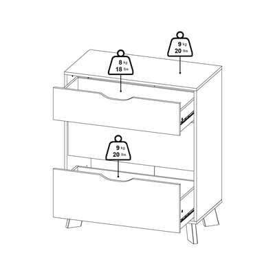 S rozmermi 79x92x40 cm ponúkajú tri priestranné zásuvky na kolieskových pojazdoch pre jednoduché použitie. Biele čelá zásuviek kontrastujú s prírodným dubovým dekórom rámu, čo vytvára moderný a všestranný vzhľad. Minimalistický dizajn s výrezmi namiesto úchytiek a šikmé nohy dodávajú komode na štýle.