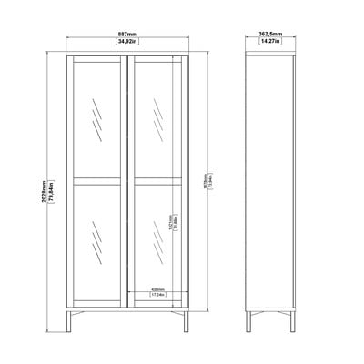 Elegantná vitrína Roomers od Tvilum kombinuje biely rám s drevenými prvkami v dekore duba. S presklenými dverami a vnútornými policami ponúka moderný úložný priestor vhodný do rôznych interiérov.
