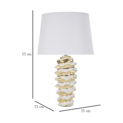Keramická stolová lampa s textilným tienidlom Glam Space od značky Mauro Ferretti. Unikátne vrstvená keramická základňa vytvára zaujímavý vizuálny kontrast a dodáva lampa dynamický vzhľad.