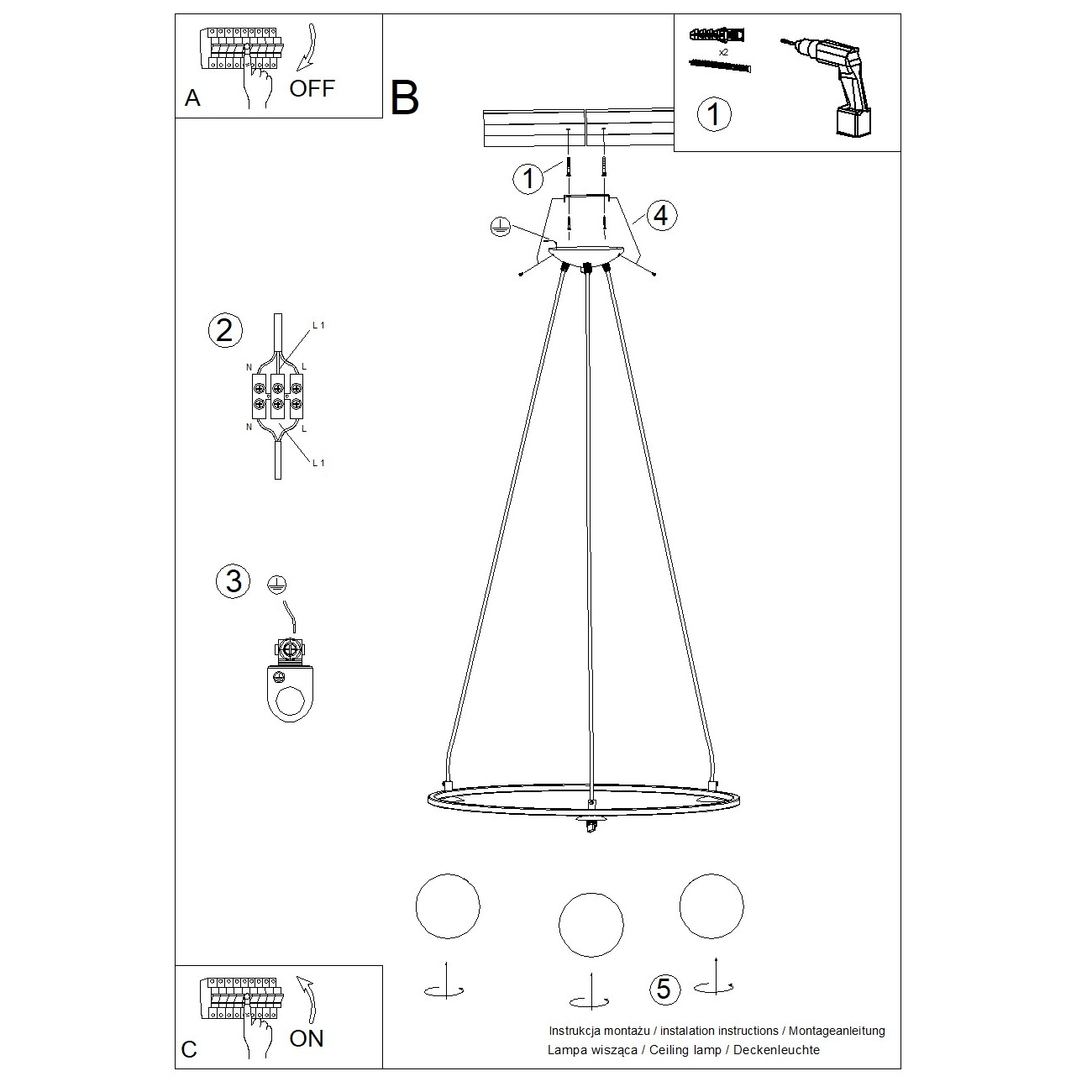 Závesné svietidlo Umerta od značky Sollux. Kruhový rám s tromi guľatými sklenenými tienidlami zabezpečuje rovnomerné rozptýlenie svetla.
