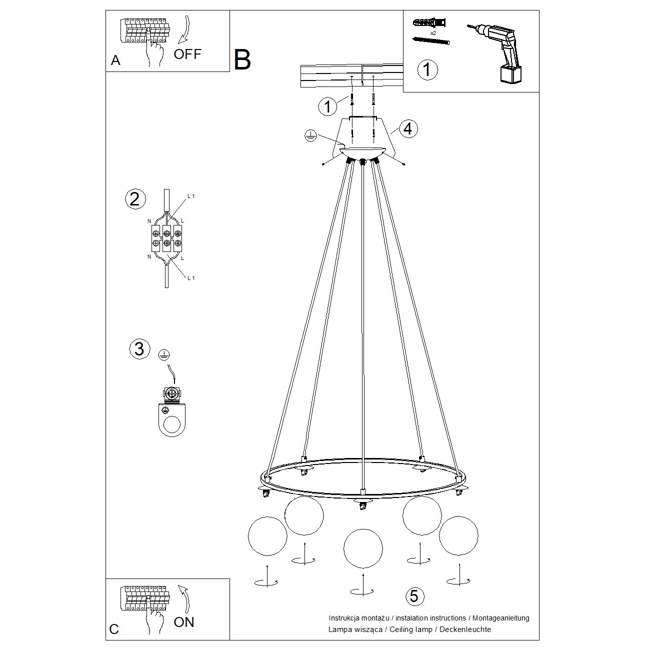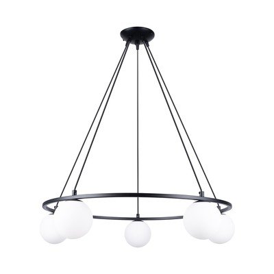 Závesné svietidlo Umerta od značky Sollux. Kruhový rám so sklenenými tienidlami v tvare gúľ dodáva priestoru elegantný a súčasný štýl.