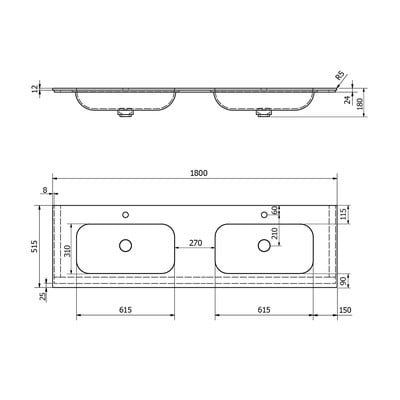 Z umelého kameňa, biele, šírka 180 cm, hĺbka 51,5 cm, výška 18 cm