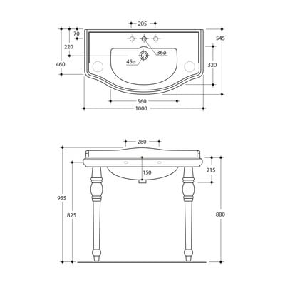 Keramické, biele, šírka 100 cm, hĺbka 54,5 cm, výška 29 cm