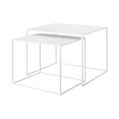 Konferenčné stolíky Fera v súprave dvoch kusov od značky Blomus. Rozdielne veľkosti umožňujú ich flexibilné kombinovanie alebo elegantné zasúvanie do seba pre úsporu miesta.