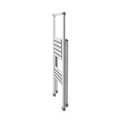 Super rebrík, starostlivo vyrobený, pohodlný, po zložení tenký (zmestí sa do úzkej priehradky), bezpečný vďaka madlu a protišmykovým presahom na schod...
