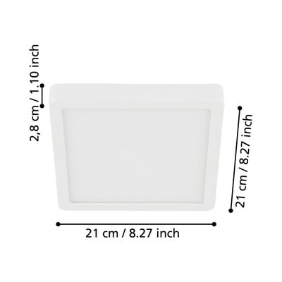 LED, s plastovým tienidlom, kovové/plastové, biele, 21x21 cm, výška 3 cm