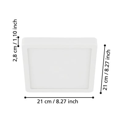 LED, s plastovým tienidlom, kovové/plastové, biele, 21x21 cm, výška 3 cm