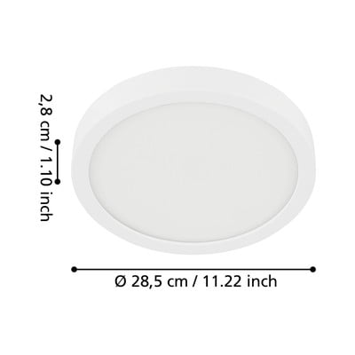 LED, s plastovým tienidlom, kovové/plastové, biele, ø 28,5 cm, výška 3 cm