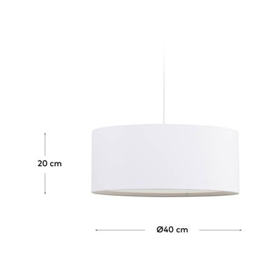 Biele tienidlo Santana s priemerom 40 cm od značky Kave Home je vyrobené z bielej látky a doplnené bielym difúzorom, ktorý zjemňuje a rozptyľuje svetlo. Minimalistický dizajn v čisto bielej farbe sa jednoducho kombinuje s rôznymi štýlmi interiérov. Na montáž je nutné dokúpiť závesný kábel, skvele bude ladiť s káblami z kolekcie Fulvia a Kaede.