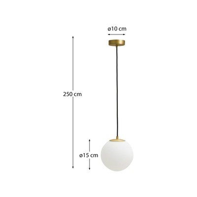 Závesné svietidlo Brisia od značky Kave Home. Guľové tienidlo z matného skla zjemňuje svetlo a vytvára tak príjemné a útulné osvetlenie.