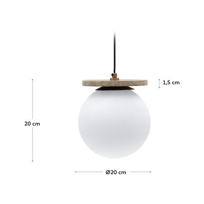 So skleneným tienidlom, sklenené/kamenné, biele, ø 20 cm, výška 24 cm