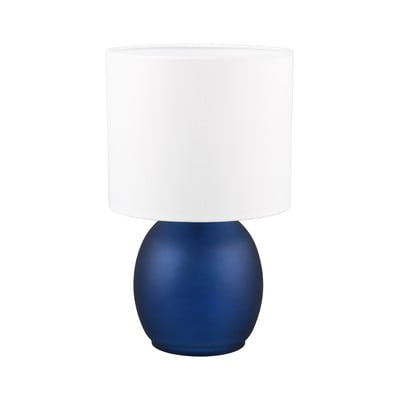 S textilným tienidlom, látková/sklenená, do zásuvky, biela/modrá, výška 29 cm