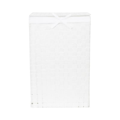 Ľahký kôš na bielizeň s textilným výpletom a drôtenou konštrukciou, ktorá nie je veľmi pevná, textilný výplet sa trochu prednáša. Ale do malej kúpeľne...