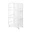 Pojazdný regál Tower od značky YAMAZAKI. Všestranné využitie podčiarkujú výškovo nastaviteľné police, zadná stena pre zakrytie vecí a štyri praktické háčiky.