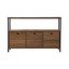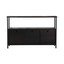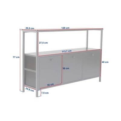 Konzolový stolík Solace od značky Kalune Design. Ponúka praktický úložný priestor vďaka trom uzatvárateľným skrinkám a otvorenej polici.
