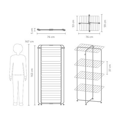 Sušiak na bielizeň HangOn Tower od značky Brabantia. Vertikálna konštrukcia ponúka dostatok miesta na sušenie bielizne aj v menších priestoroch.