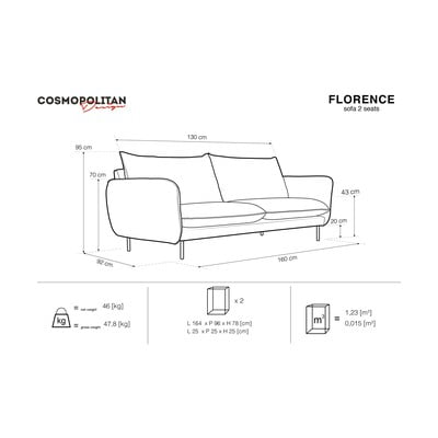Pohovka Florence od značky Cosmopolitan Design je kúskom nábytku, ktorý priamo pozýva k posadeniu. Užijete si na nej pohodlie, ktoré zaisťuje precízne zostavená konštrukcia a komfortné čalúnenie. Poťah je vyrobený z príjemného zamatu a je hebký na dotyk. Zároveň sa pohovka pýši vysokou hodnotou Martindale.