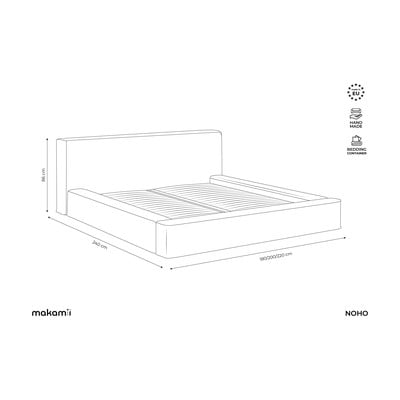 Svetlosivá čalúnená dvojlôžková posteľ s úložným priestorom s roštom 140x200 cm Noho – Makamii