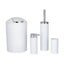 Súprava kúpeľňových doplnkov Calvo od značky Wenko sa skladá zo štyroch nenahraditeľných pomocníkov, ktorí sa postarajú o poriadok a hygienu vo vašej kúpeľni. V sade nájdete téglik na zubné kefky, dávkovač mydla s pumpičkou, odpadkový kôš s objemom 6,5 litra a praktickou výklopnou klapkou pre ľahké vyprázdňovanie, a tiež WC sadu s kefou a vymeniteľnou hlavicou o šírke 6,5 cm. Kefa má flexibilné plastové štetiny, ktoré účinne čistia a nepoškriabu toaletnú misu.