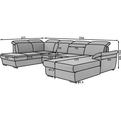 Polohovacia/rozkladacia, pravý roh/do tvaru "U", čierna, viacmiestna, šírka 336 cm
