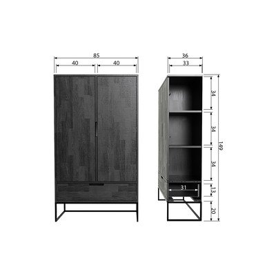 Z jaseňového drevaPovrchová úprava: farbenie/povrchová úprava: kefovanieMatnáČiernaŠírka 85 cmVýška 149 cmHĺbka 33 cm