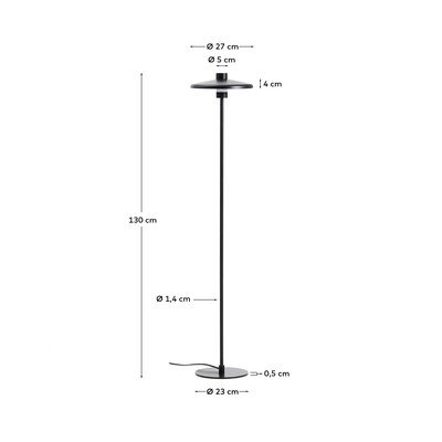 Čierna stojacia lampa Nuvira od značky Kave Home sa vyznačuje elegantným a funkčným dizajnom. Jej konštrukcia je vyrobená zo saténovej ocele, ktorá dodá každej miestnosti moderný a sofistikovaný nádych.