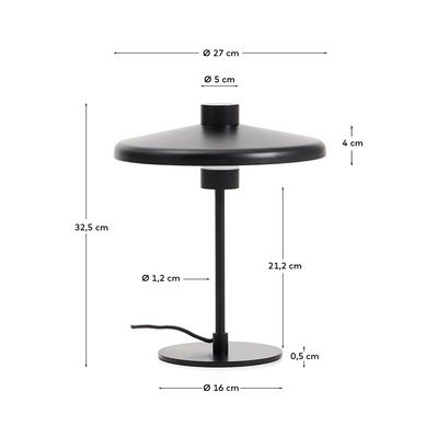 Stolová lampa Nuvira od značky Kave Home zaujme svojím elegantným a funkčným dizajnom. Jej konštrukcia z matnej ocele dodá každej miestnosti moderný a sofistikovaný nádych. Lampa má výrazné ploché kruhové tienidlo a štíhly stojan s okrúhlou základňou.