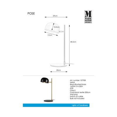 Stolová lampa PoseS kovovým tienidlom, kovová, do zásuvky, čierna/v zlatej farbe, výška 49 cm