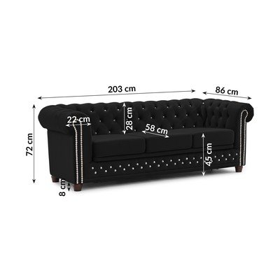Zamatová, rozkladacia, chesterfield, čierna, vodoodolná/odolná proti škvrnám, dvojmiestna, šírka 203 cm