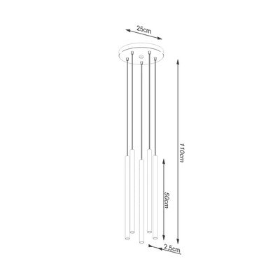 Závesné svietidlo Fideus od značky Sollux. Viacero samostatných svetelných zdrojov visiacich v rôznych výškach vytvára dynamický a moderný vzhľad.